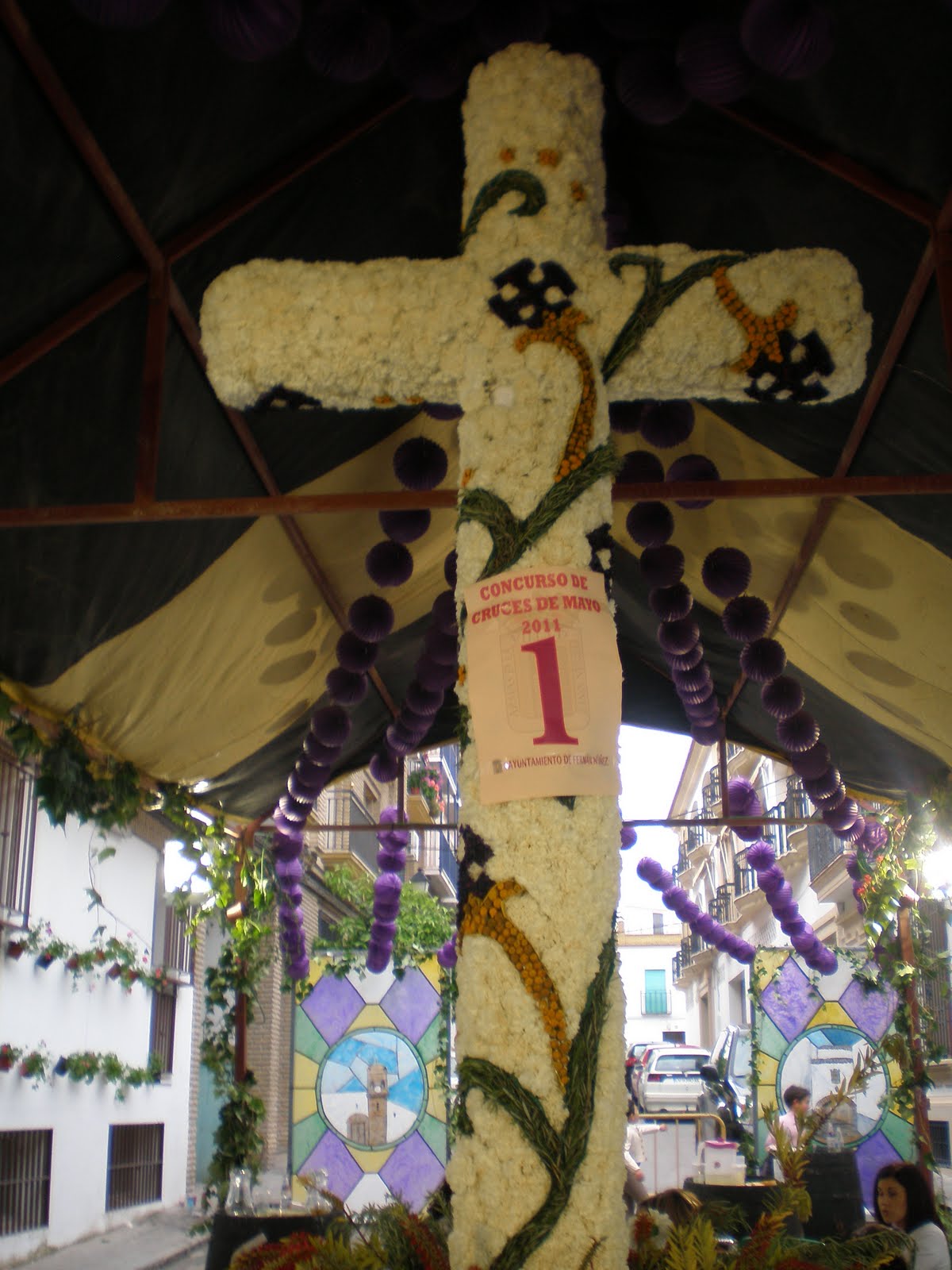 Calle Félix Rodriguez de la Fuente, y la barra se encontraba en la Peña Madridista. La cruz, adornada con claveles blancos y distintos dibujos e insignias de la Cofradía, recibió el PRIMER PREMIO. A la entrada y salida de la cruz se encontraban unas bonitas imitaciones de vidrieras con monumentos del pueblo, como la fuente de los Caños Dorados, El Palacio Ducal, el Arco o la